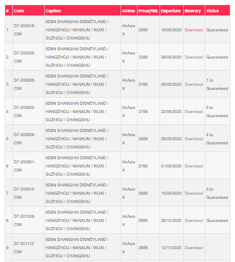 Itinerary (click below) : GD – 8D6N Shanghai + Disneyland