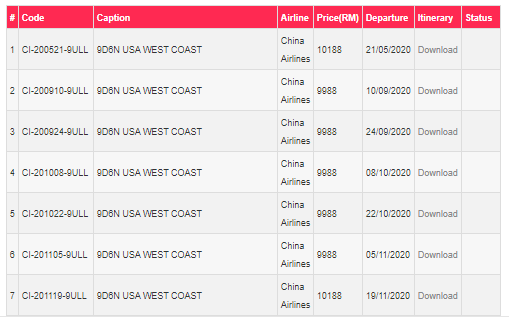 Itinerary (click below) : GD – 9D6N USA West Coast